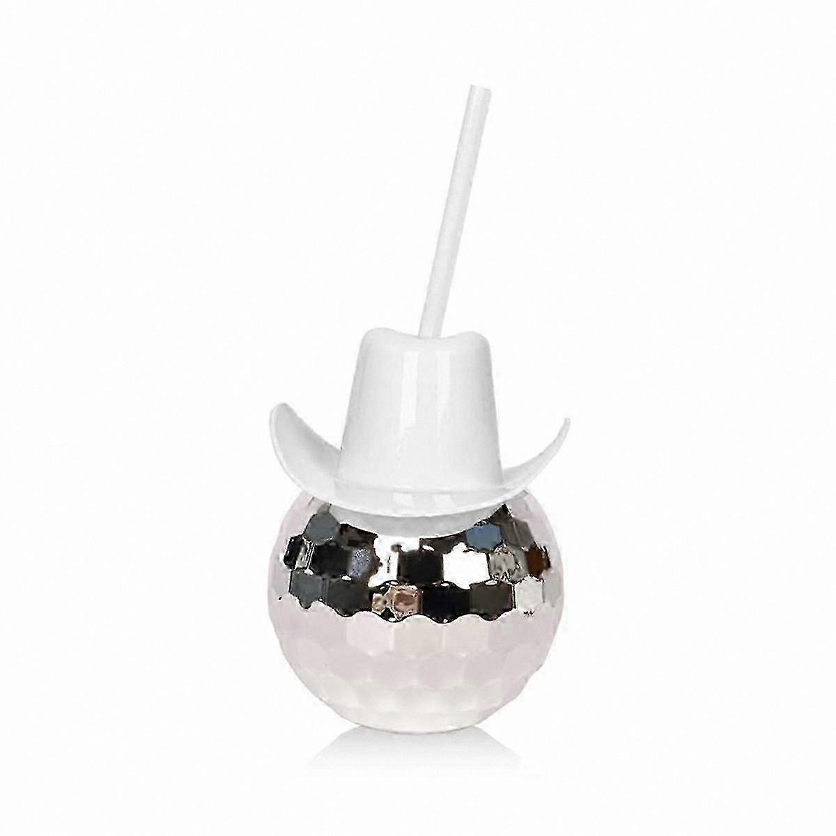 Glitter Disco Ball Cups with Straws for Party Decor - Electroplated Cowboy Hat Inspired Mugs Perfect for Bachelorette and Hen Nights