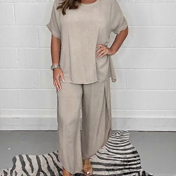 GMXIA Summer Women's Suit Fashion Solid Color Short Sleeve O-Neck Loose Casual Suit Women Suits & Sets
