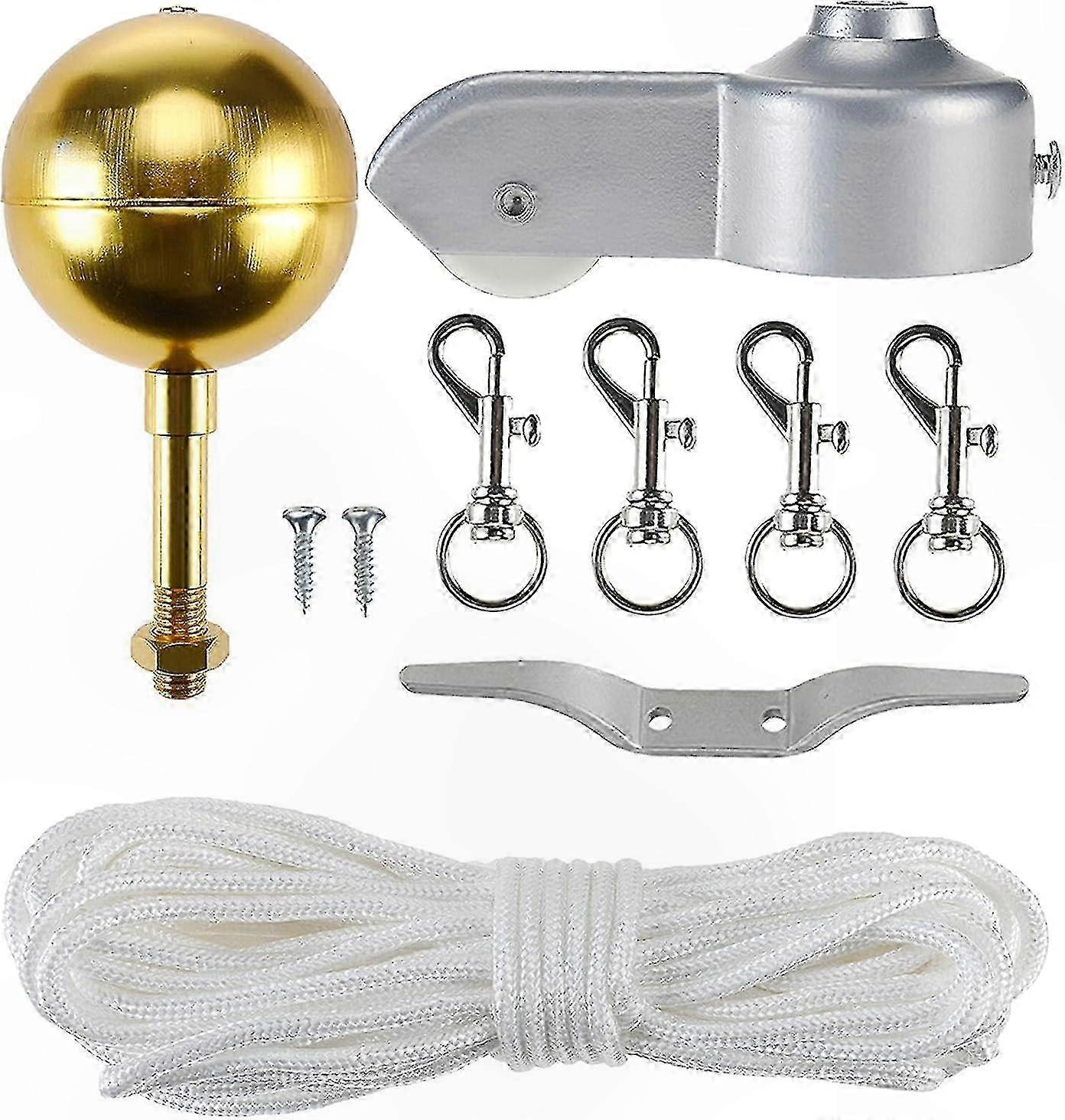 Gold Ball Flagpole Topper with 50 Ft Halyard Rope, Cleat Hook, and Swivel Hardware for Outdoor Flagpoles