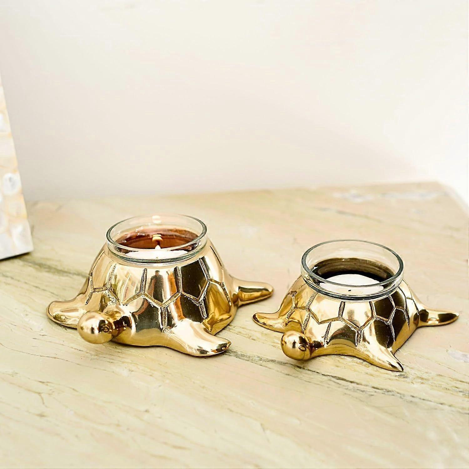 Golden Turtle Votive Holder Set of 2 || Elegant Home and Office Dcor Accessories for Living Room