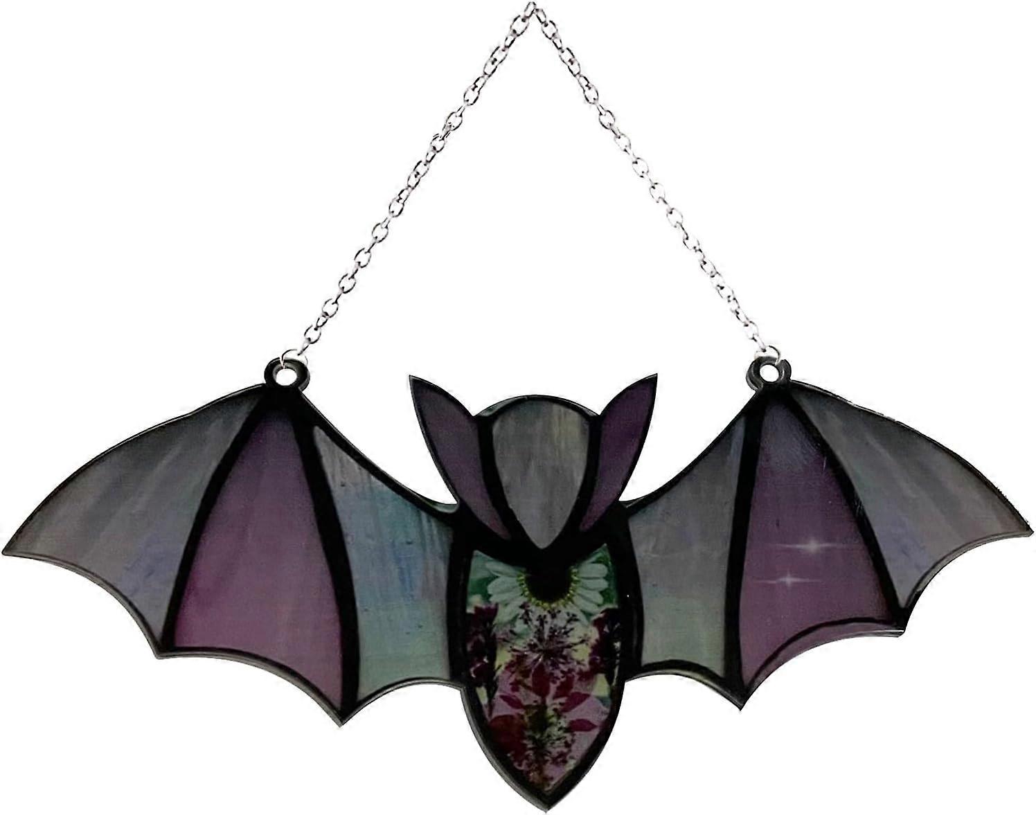 Goth Bats Halloween Decorations-Stained Glass Light Catcher Window Hanging Gifts,Acrylic Glass Art Wall Decor Halloween Bats Decorations,Gothic Bats C