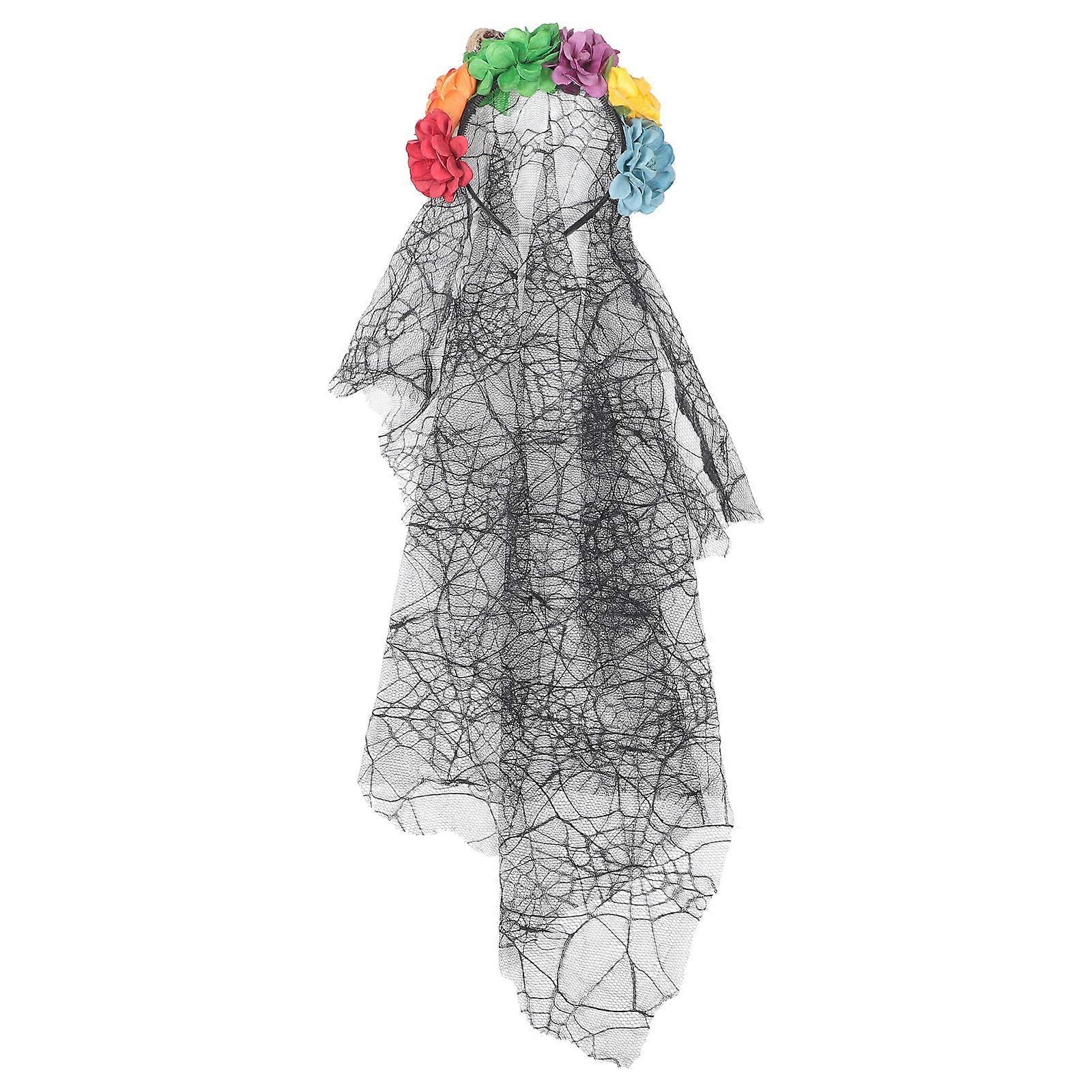 Halloween Floral Headband Costume Party Headwear Women Polyester Fabric Skull Shape 65x20cm DIY Hair Decoration 1Pcs