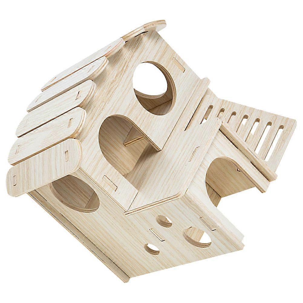 Hamster Hideout Double Layer Wooden Villa with Ladder and Bite Resistant Maze for Cage Activity and Sleeping – Suitable for Dwarf Hamsters, Mice, and