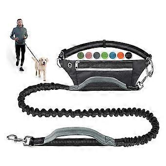 Hands Free Dog Leash for Running Walking Jogging Training Hiking, Retractable Bungee Dog Running Waist Leash for Medium to Large Dogs -Black/Grey