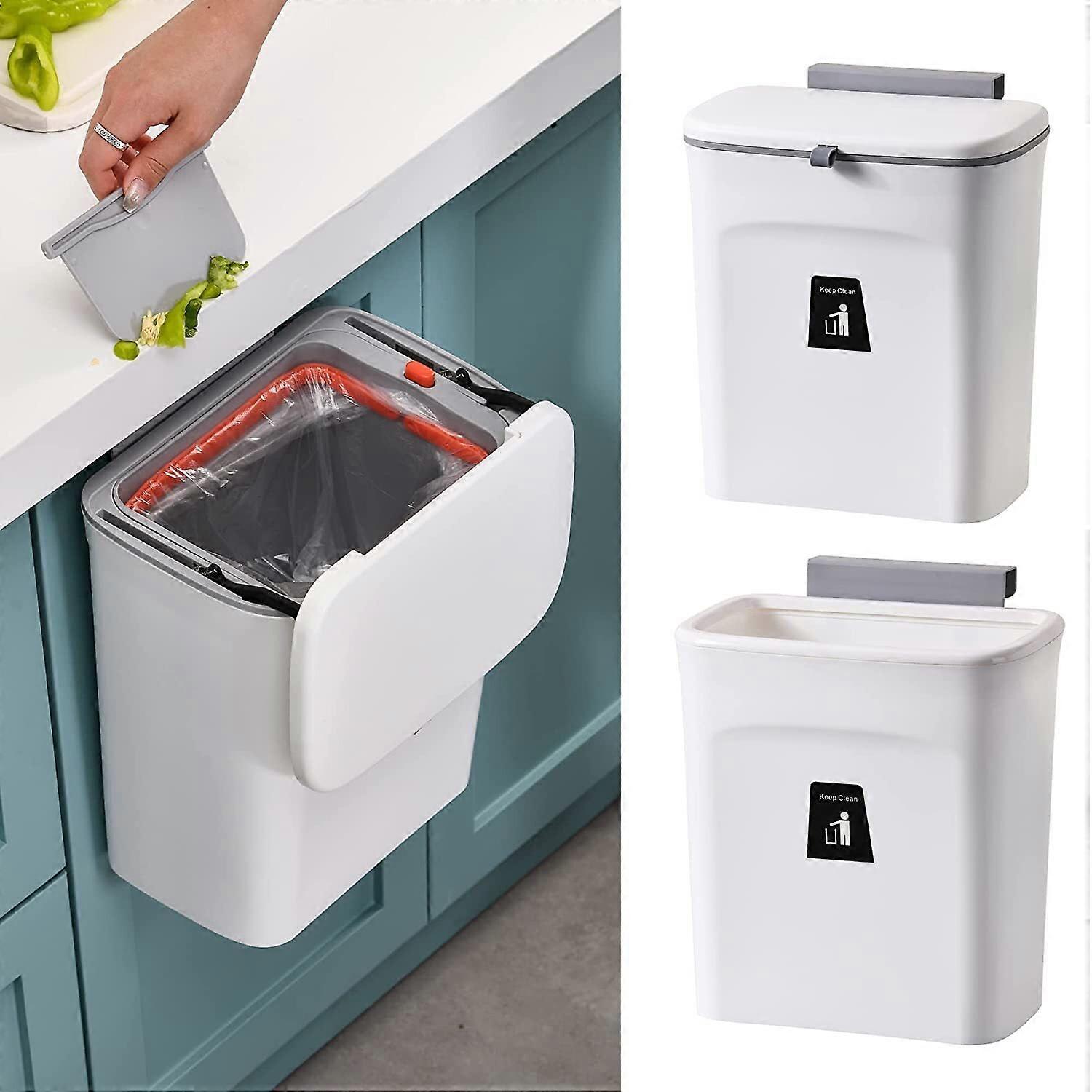 Hanging Trash Can with Lid - 2.4 Gallon Wall-Mounted Compost Bin for Under Sink, Small Kitchen Garbage Can Compatible with Cupboard & Countertop