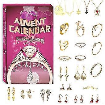 Hcankcan Surprise Jewelry Blind Box 24 Days Christmas Countdown Calendars Rings Necklace Earrings Bracelet Xmas Advent Countdown Calendar Gift