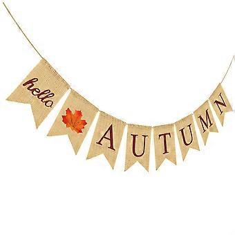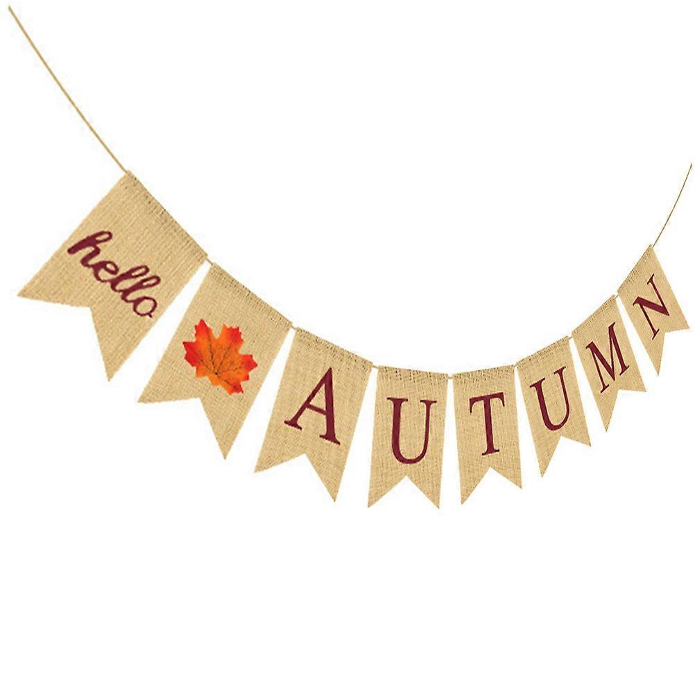 Hello Autumn Burlap Banner with Maple Leaf Design – Linen Swallowtail Garland for Home Decor, Party Supplies & Seasonal Celebrations