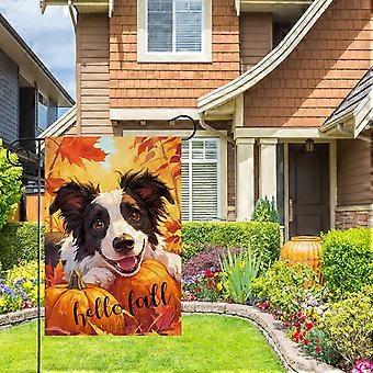 Hello Fall Border-Coll Σημαία 28x40 διπλής όψης, κολοκύθες Σημαίες κήπου(6548)