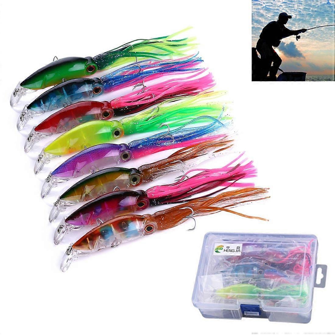 HENGJIA JIZ002 10cm/16.6g 8 PCS Big Octopus Squid Shaped Hard Baits Long Shot Fishing Lures Tackle Baits Fit Sea Fishing and Freshwater Fishing,Boxed