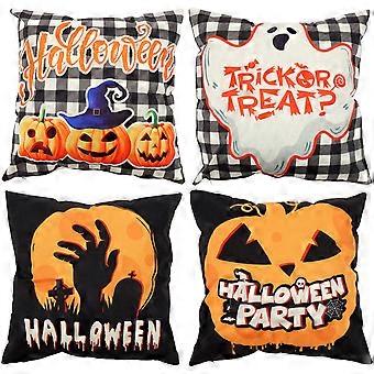 Here's a polished and engaging product description based on your input: **4pcs Halloween Throw Pillow Covers – Pumpkin & Bat Design – Soft