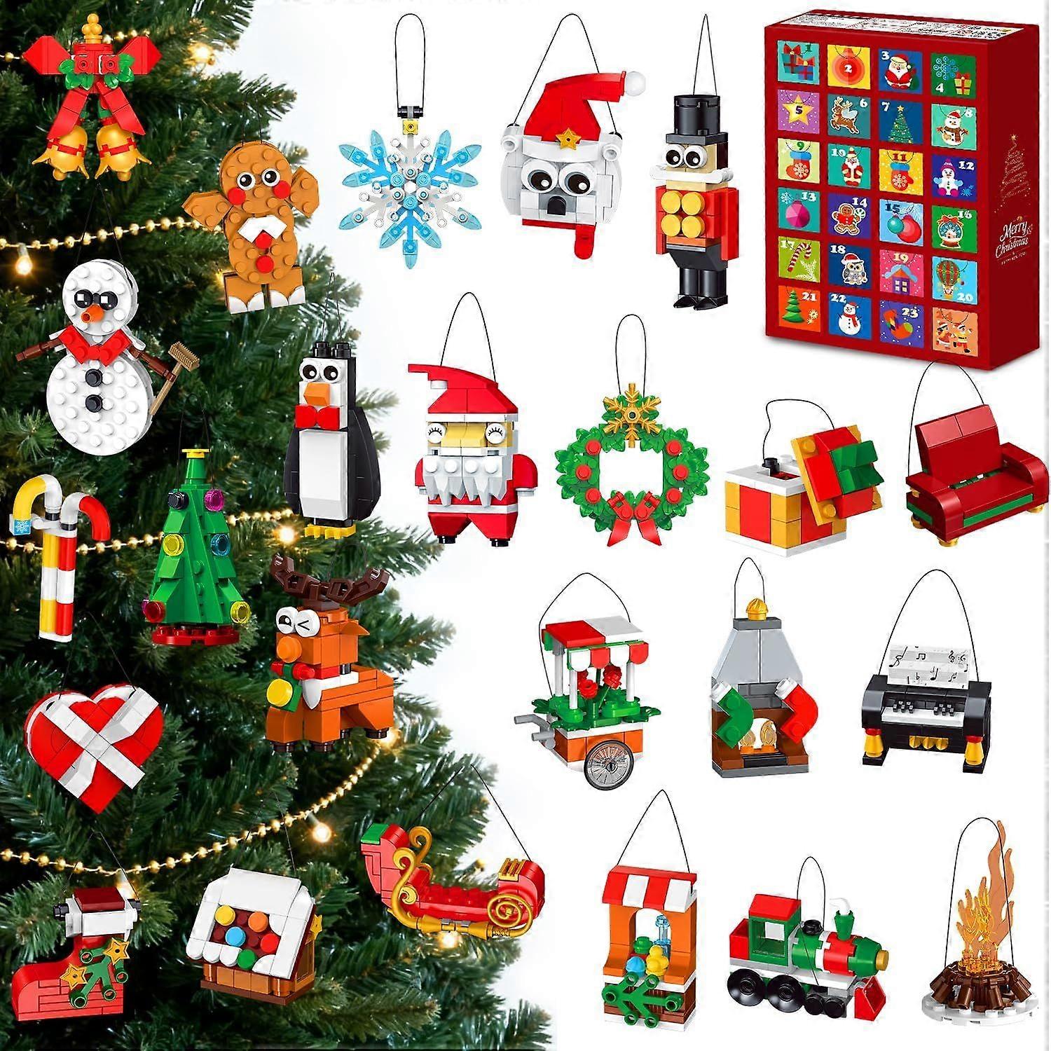 HOGOKIDS 2025 Advent Calendar Xmas Ornaments Building Set, 24 Days Countdown Hanging Xmas Tree Decor Wreath Santa Snowman Xmas Gift Stocking Stuffer B