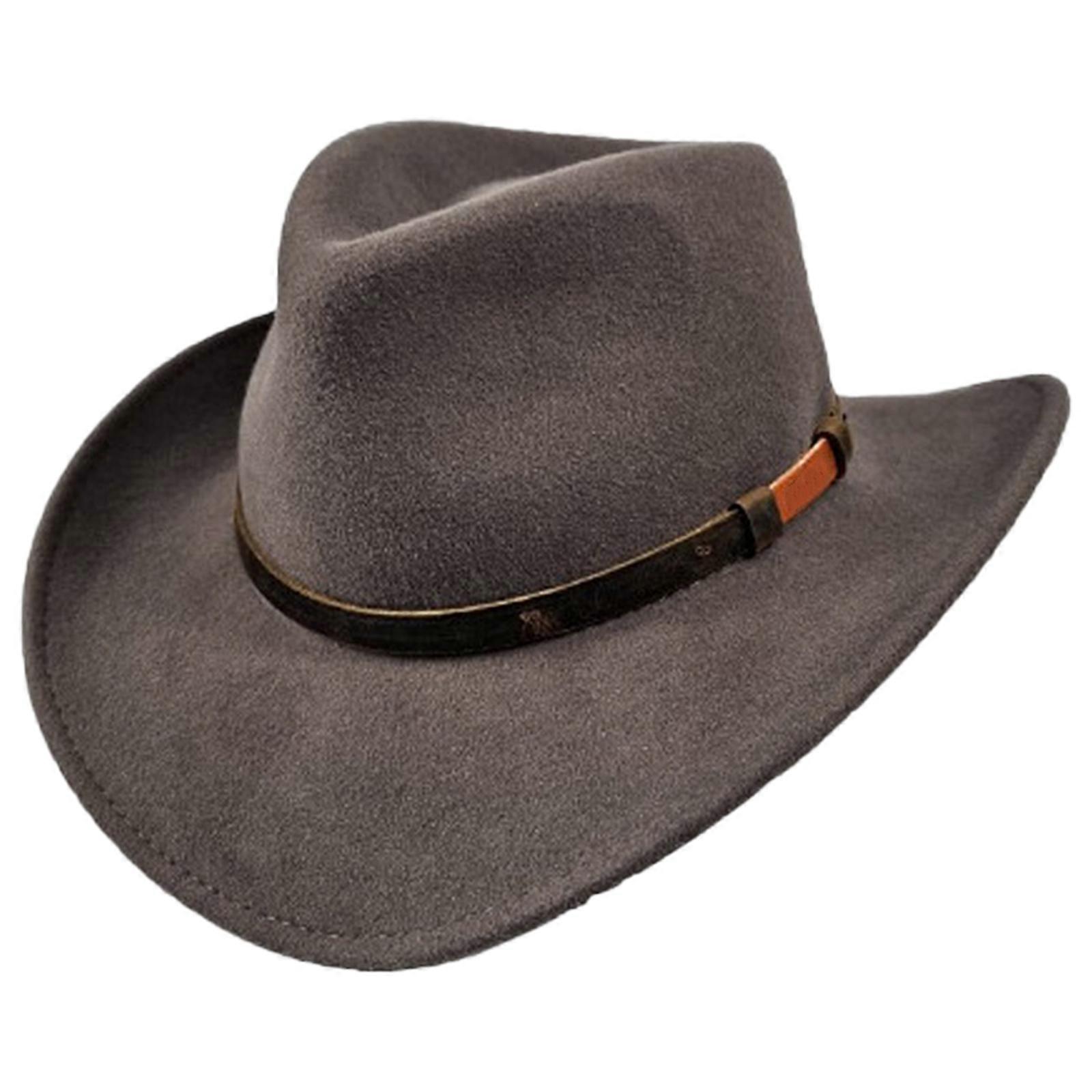 Homburg Top Hat with Exotic Belt Maillard Victorian Age Wool Top Hat Classical Porkpie Hat for Boy Men Adults Wool charcoal gray