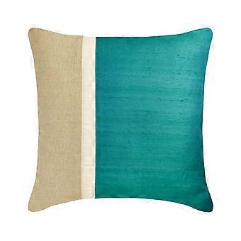 HomeCentric Turquoise 22"x22" Throw Pillow, Silk & Linen Patchwork, Colorblock Design for Couch – Modern Solid Color Style