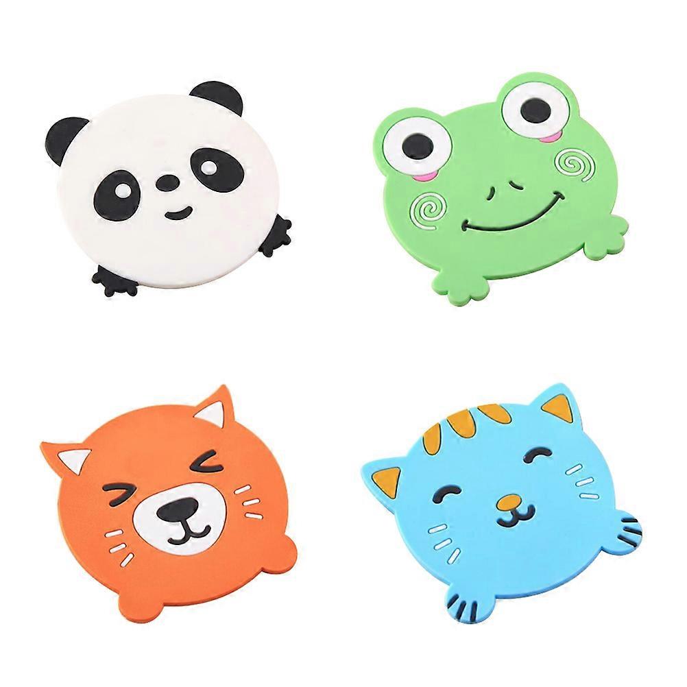 Insulated Coasters Adorable Cartoon Animal Silicone Non- Mats for Women 9.5 x 9 x 0.2 cm 4Pcs