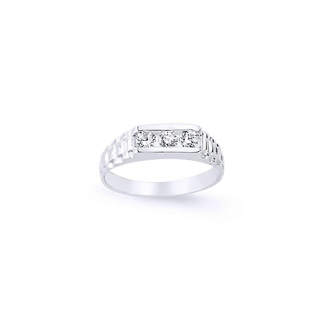 Jewelco London Boys Sterling Silver Cubic Zirconia Watch Style ID Signet Ring