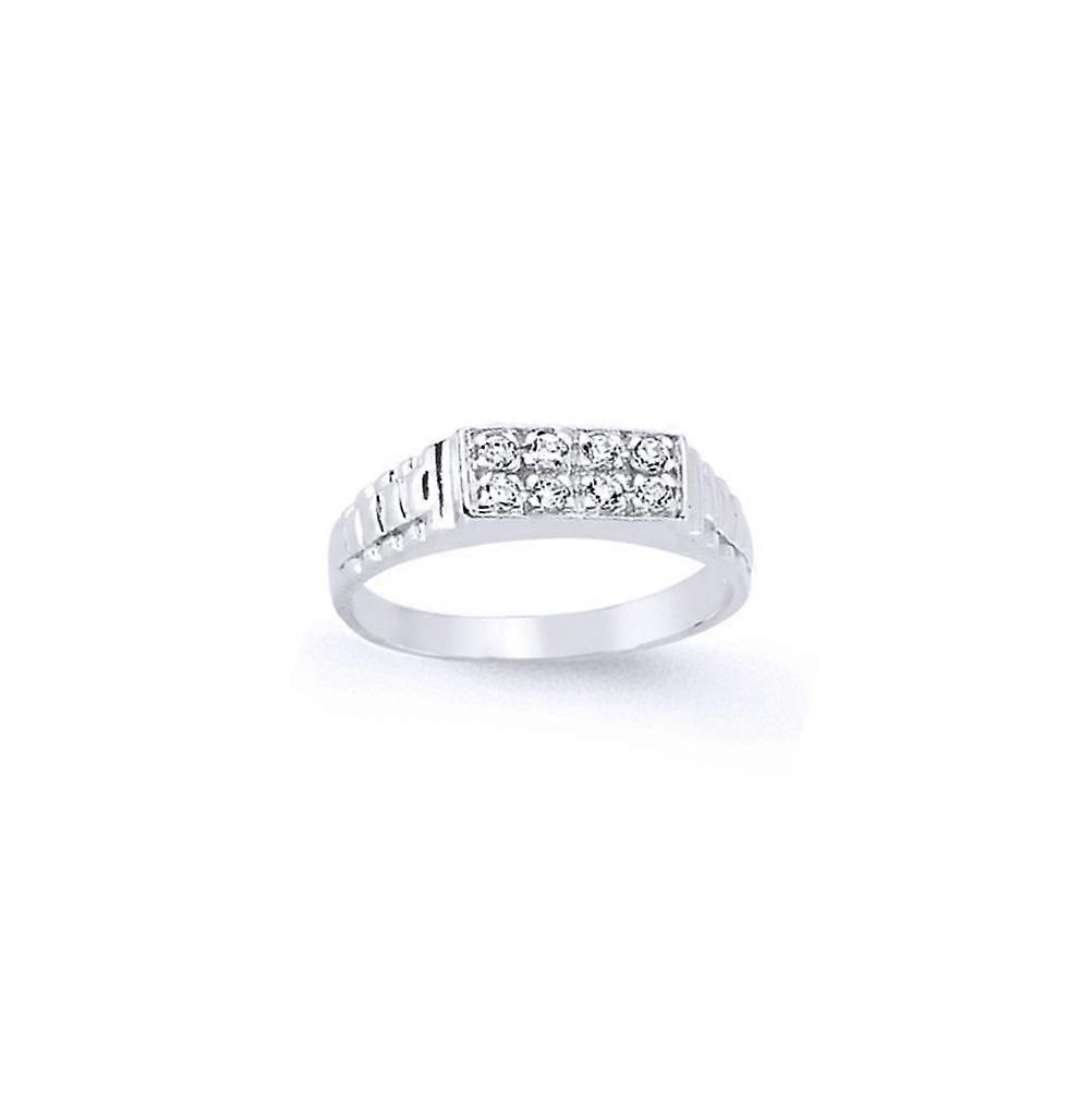 Jewelco London Boys Sterling Silver Cubic Zirconia Watch Style ID Signet Ring