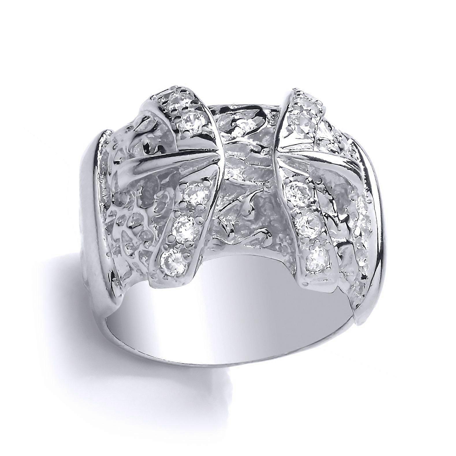 Jewelco London Mens Sterling Silver Cubic Zirconia Double Belt Buckle Signet Ring