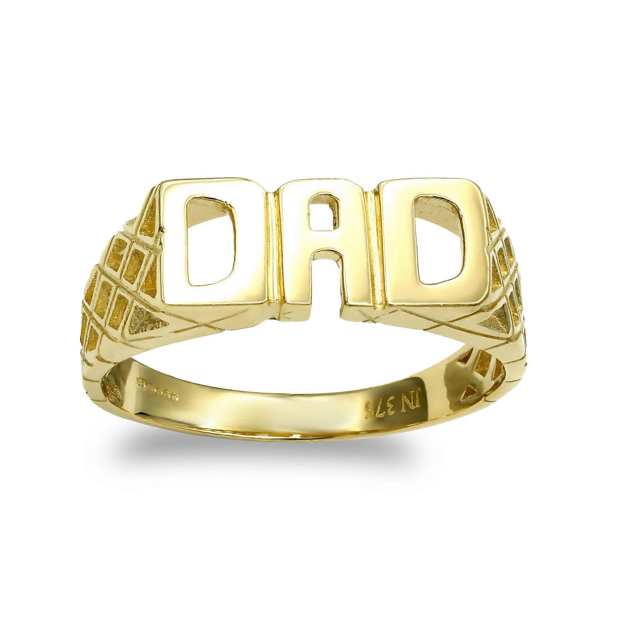 Jewelco London Men's Solid 9ct Yellow Gold Basket Sides DAD Ring