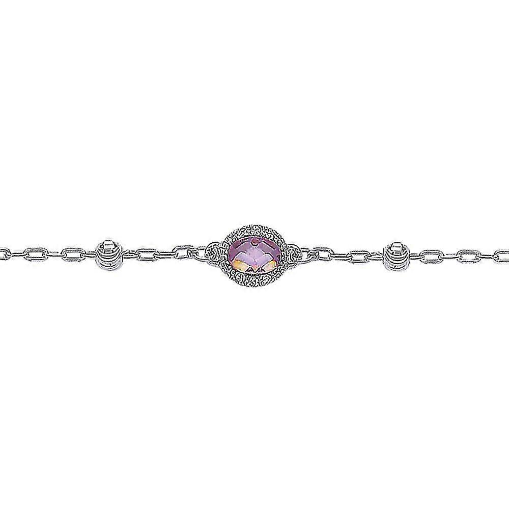 Jewelco London Sterling Silver Purple Oval Cubic Zirconia Halo Bead By The Inch Bracelet