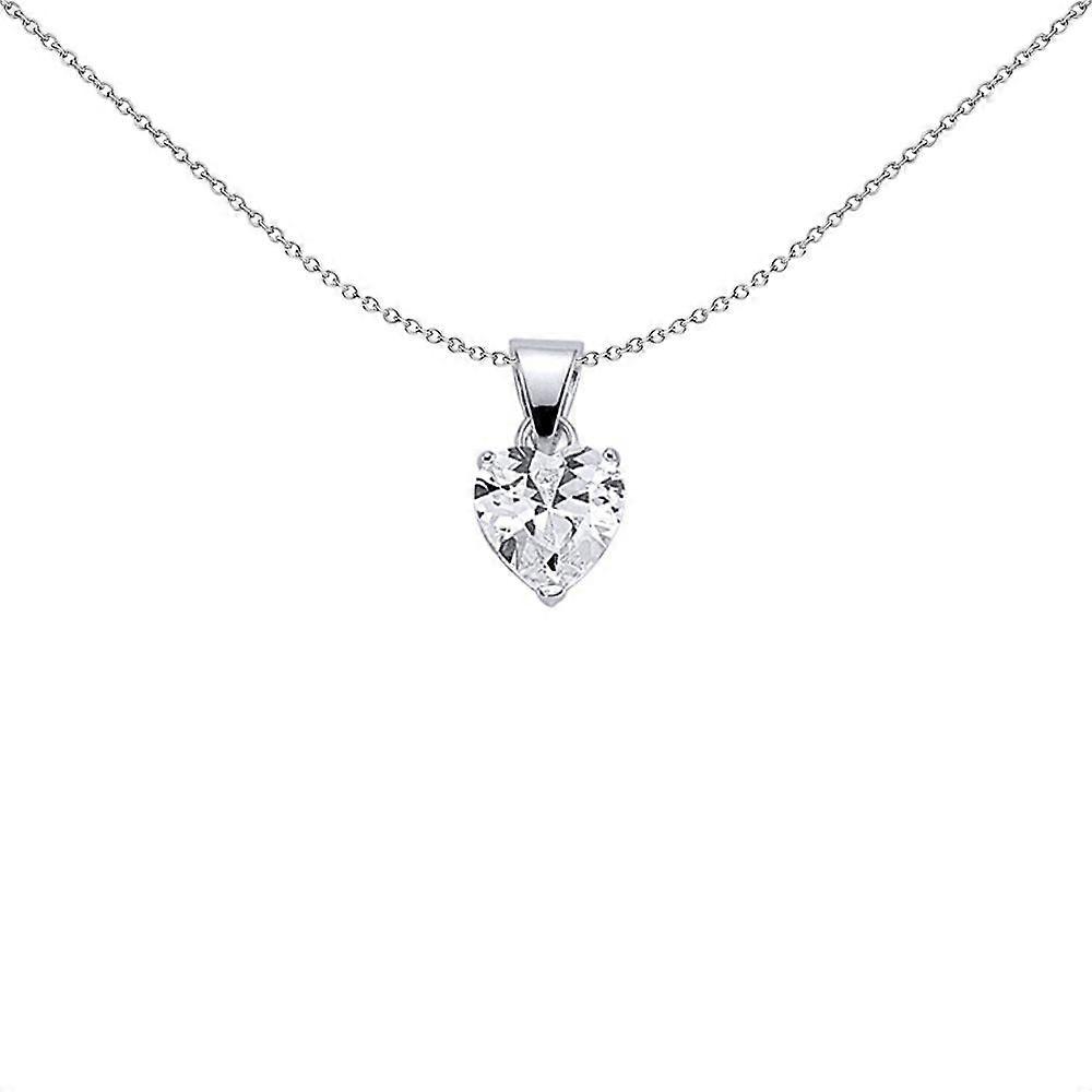 Jewelco London Ladies Sterling Silver Heart Cubic Zirconia Love Heart Pendant Necklace 18 inch