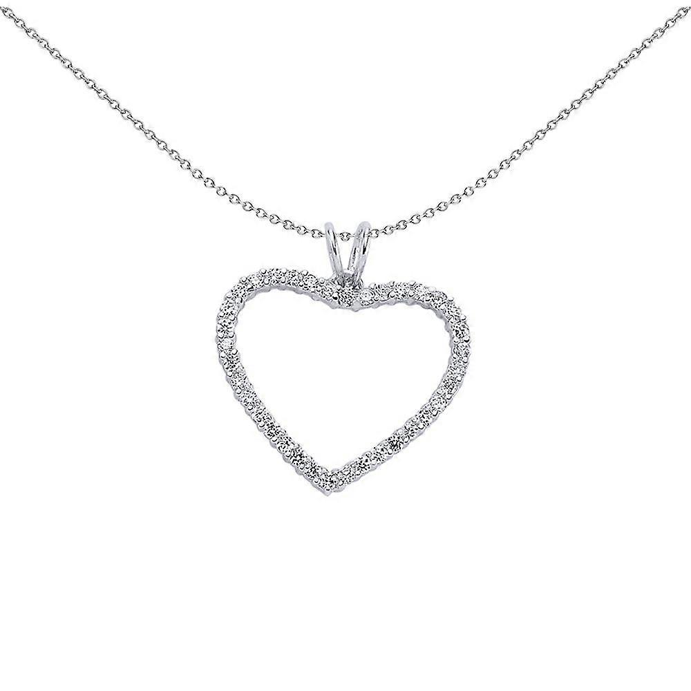 Jewelco London Ladies Sterling Silver Cubic Zirconia Love Heart Pendant Necklace 18 inch
