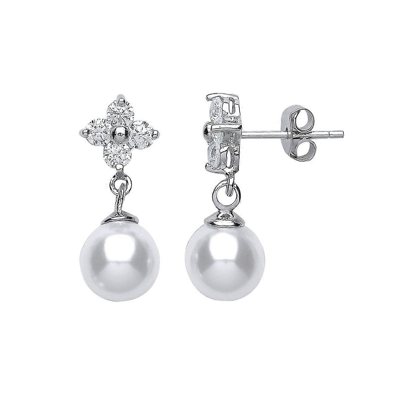 Jewelco London Ladies Sterling Silver Cubic Zirconia & Simulated Pearl Quadrilogy Drop Earrings 8mm