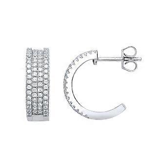 Jewelco London Ladies Sterling Silver Cubic zirconia Pave Eternity Ring Drop Hoop Earrings 17mm