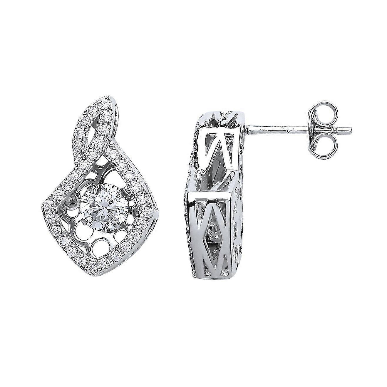 Jewelco London Ladies Sterling Silver Cubic Zirconia Solitaire Drop Earrings