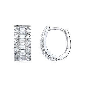 Jewelco London Ladies Sterling Silver Baguette Cubic zirconia Pave Eternity Ring Hoop Earrings 12mm