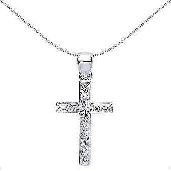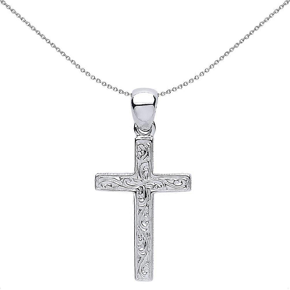 Jewelco London Ladies Sterling Silver Floral Filigree Cross Pendant Necklace 18 inch
