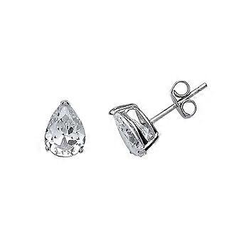 Jewelco London Ladies Sterling Silver Pear Cubic Zirconia Tears of Joy Stud Earrings