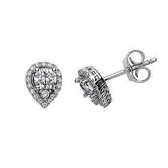 Jewelco London Ladies Sterling Silver Pear Cubic Zirconia Tears of Joy Stud Earrings