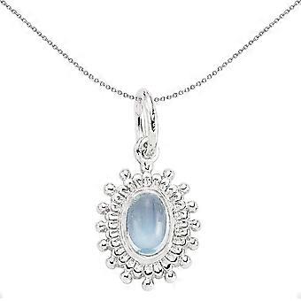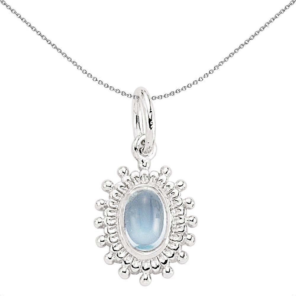 Jewelco London Ladies Sterling Silver Light Blue Oval Cubic Zirconia Sunshine Sunburst Pendant Necklace 18 inch