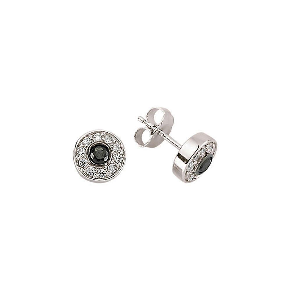 Jewelco London Ladies Sterling Silver Black Cubic Zirconia Flat Halo Stud Earrings