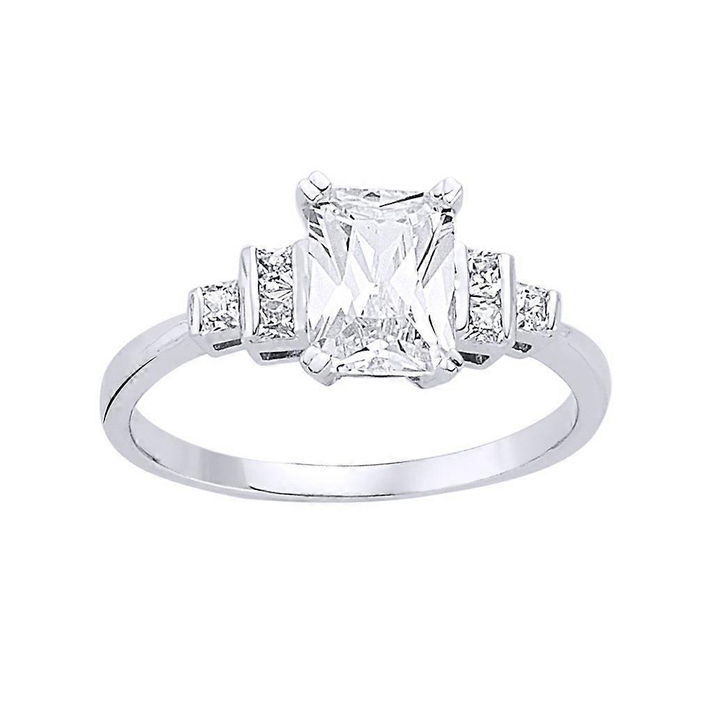 Jewelco London Ladies Sterling Silver Emerald and Princess Cut Cubic Zirconia Solitaire Engagement Ring