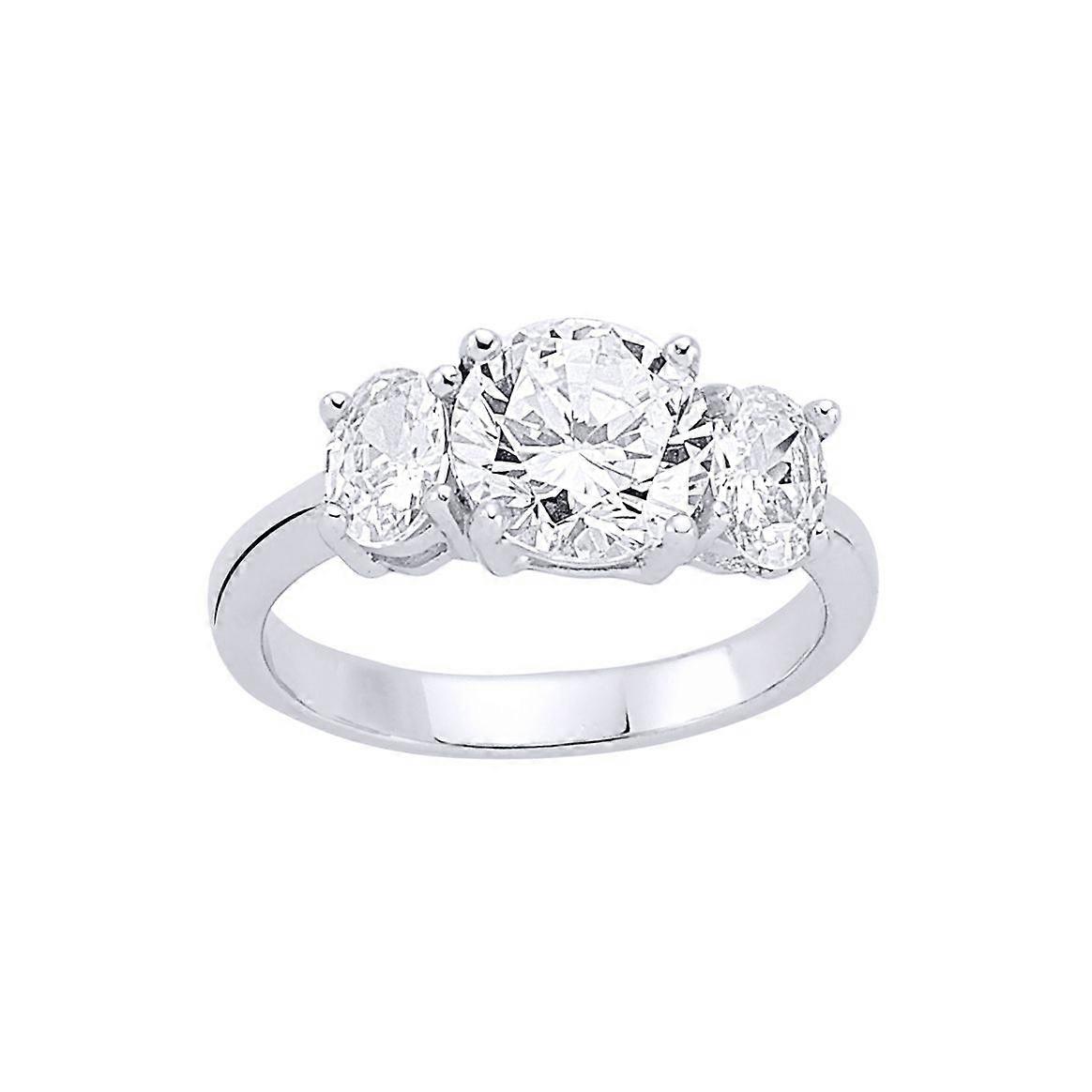 Jewelco London Ladies Sterling Silver Oval Cubic Zirconia Trilogy Engagement Ring