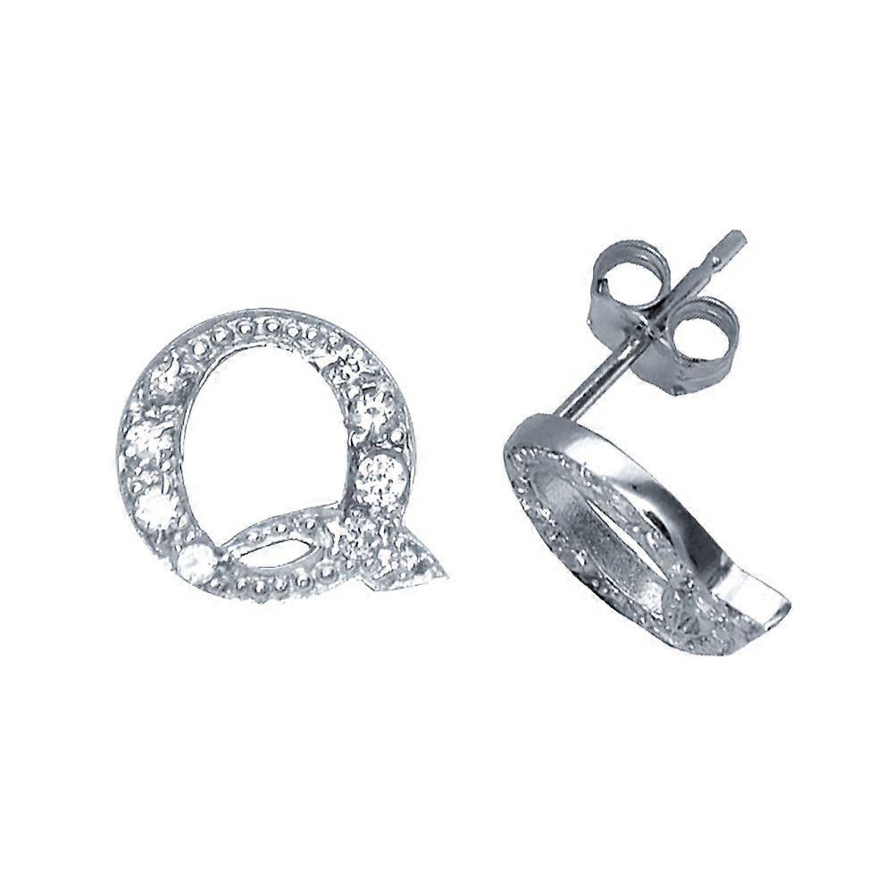 Jewelco London Ladies Sterling Silver Cubic Zirconia Identity Initial Stud Earrings Letter Q