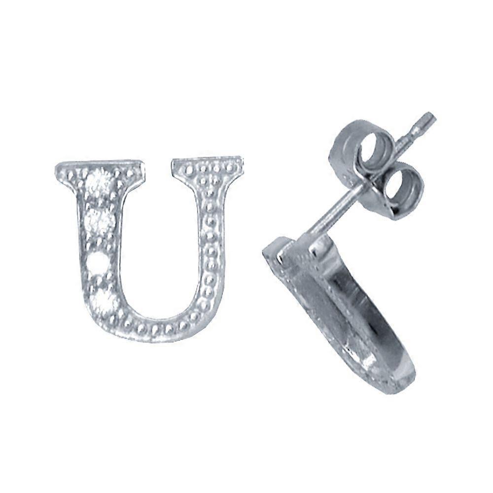 Jewelco London Ladies Sterling Silver Cubic Zirconia Identity Initial Stud Earrings Letter U