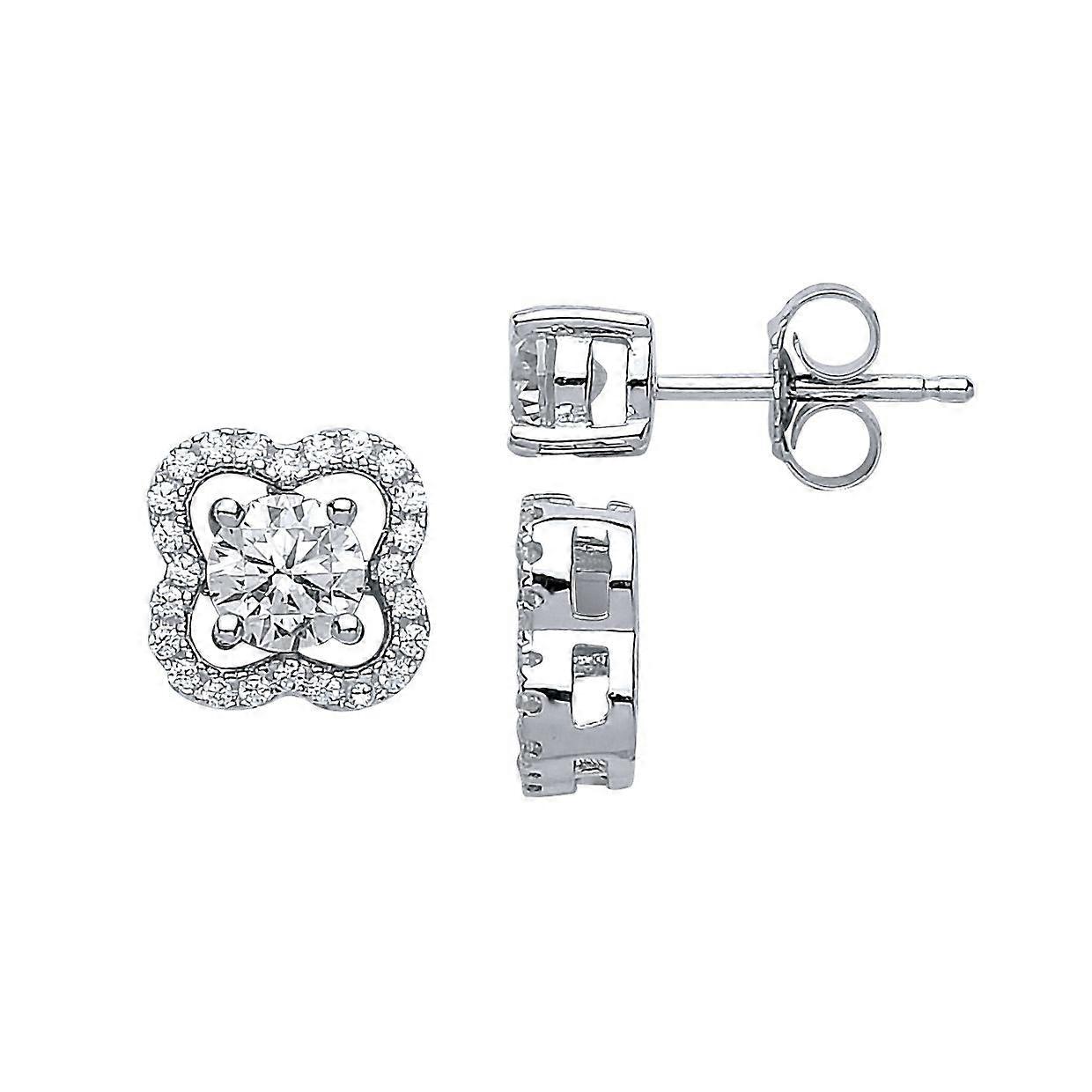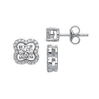 Jewelco London Ladies Sterling Silver Cubic zirconia Lucky Clover Solitaire Stud Earrings Convertible, 5mm without frame, 10mm with