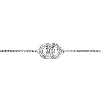 Jewelco London Ladies Sterling Silver Cubic zirconia Pave Linked Rings Charm Bracelet 13mm 7 inch
