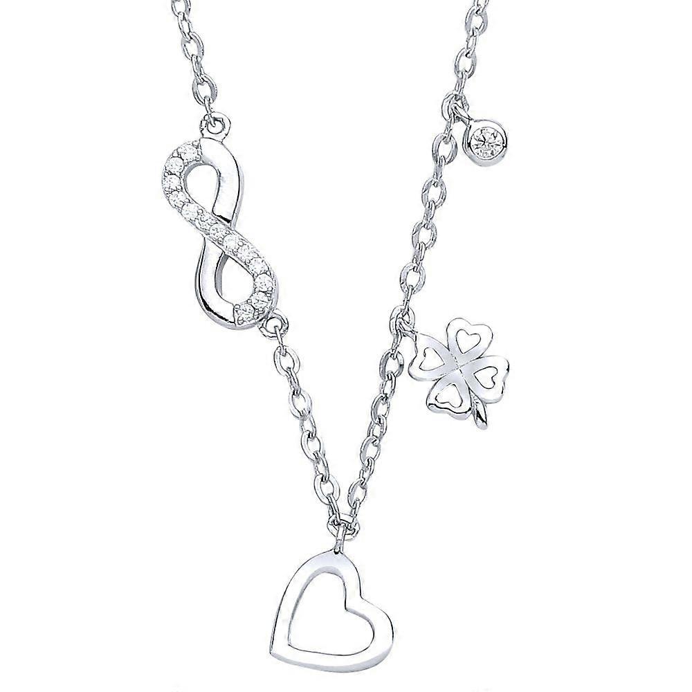 Jewelco London Ladies Sterling Silver Cubic Zirconia Infinity Lucky Love Heart Charm Necklace 15 + 2 inch