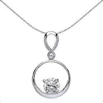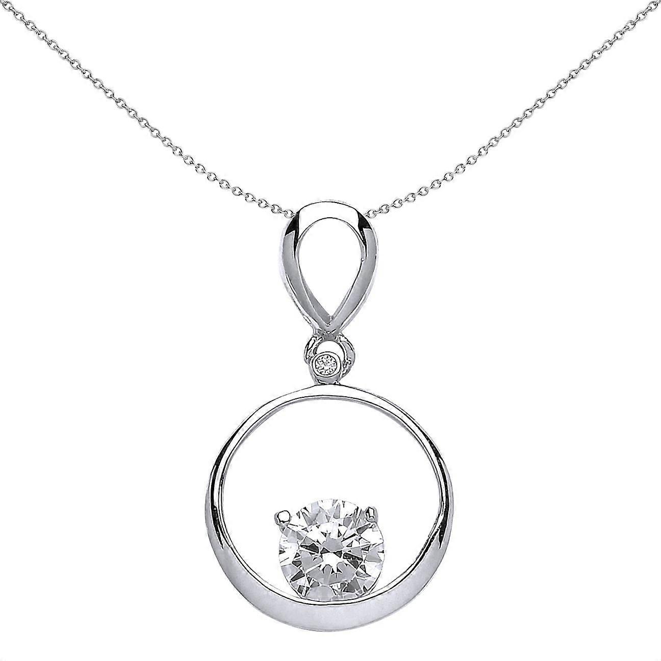 Jewelco London Ladies Sterling Silver Cubic Zirconia Sitting Solitaire Halo Charm Necklace 18 inch