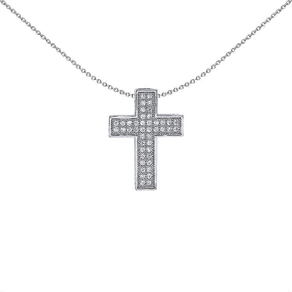 Jewelco London Ladies Sterling Silver Cubic Zirconia Pave Cross Pendant Necklace 18 inch