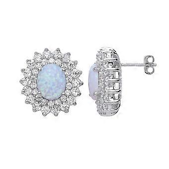 Jewelco London Ladies Sterling Silver Oval Opal Royal Cluster Stud Earrings