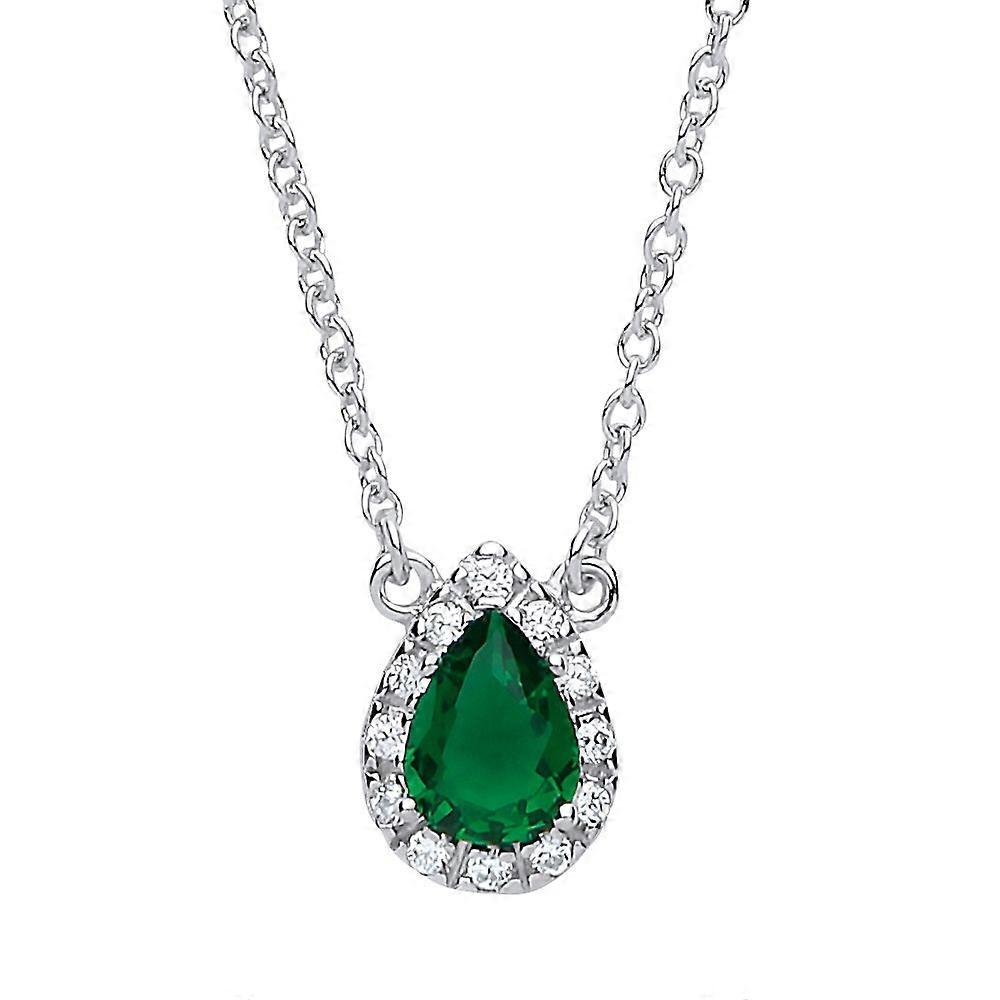 Jewelco London Ladies Sterling Silver Emerald-Green Pear Cubic zirconia Teardrop Halo Charm Necklace 16 + 2 inch