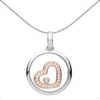 Jewelco London Ladies Rhodium & Rose Gold-Plated Sterling Silver Cubic Zirconia Floating Stone Heart Pendant Necklace 18 inch