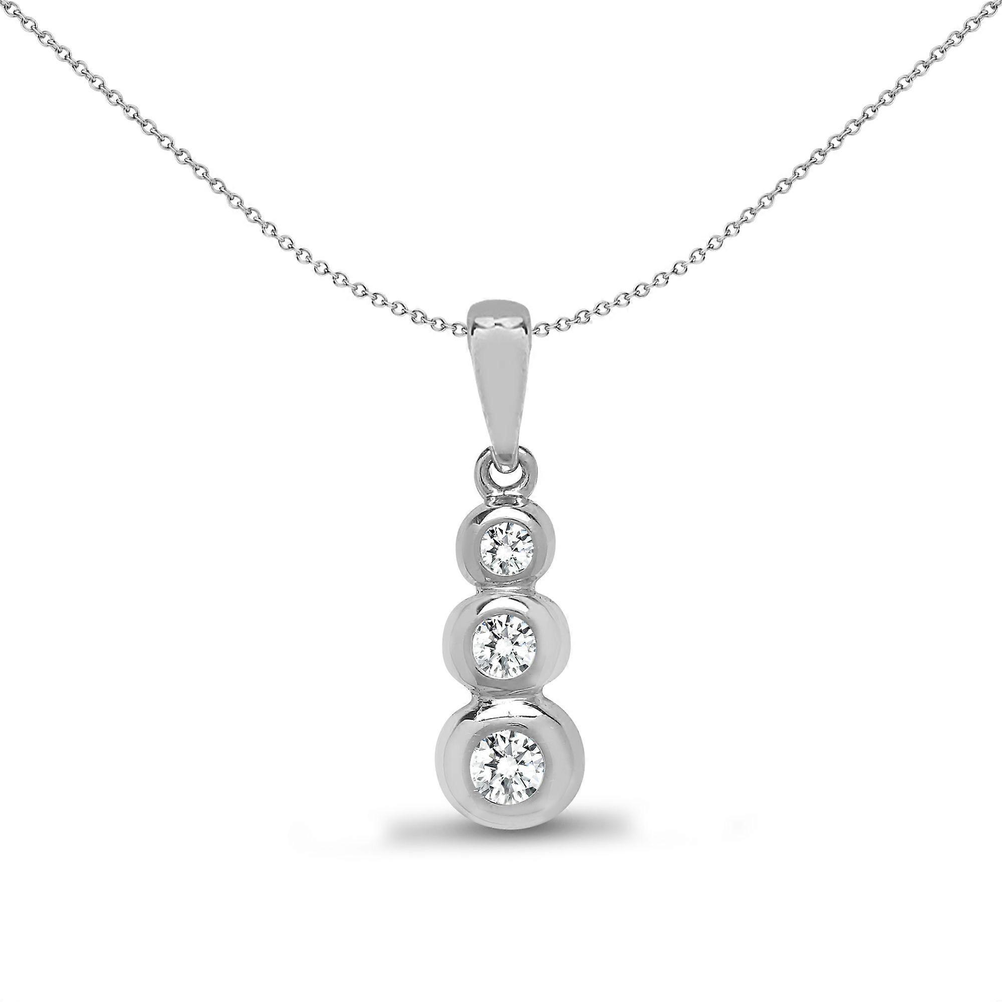Jewelco London Ladies Solid 18ct White Gold Rub Over Set Round G SI1 0.11ct Diamond Trilogy Donut Drop Pendant