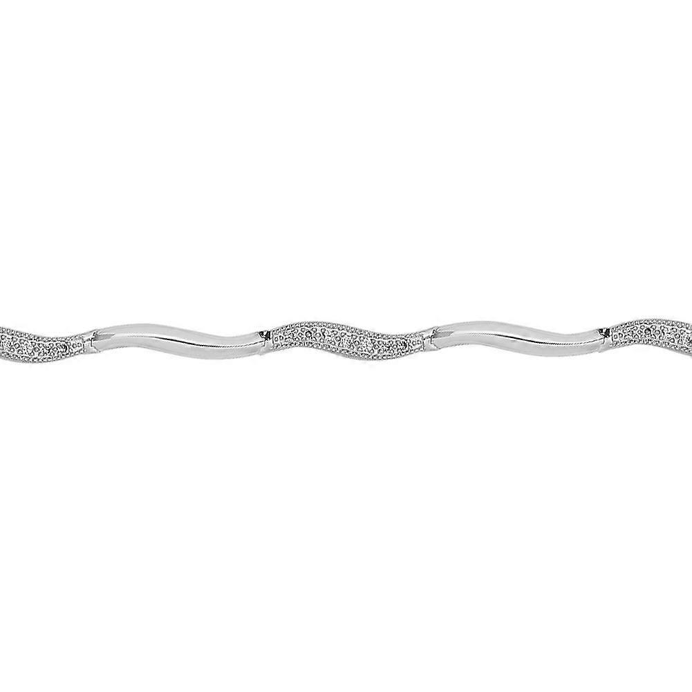 Jewelco London Ladies Solid 9ct White Gold Pave Set Round H I1 0.28ct Diamond Fancy Tennis Bracelet