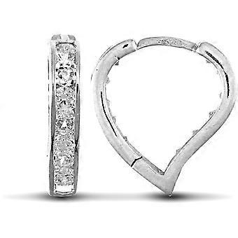 Jewelco London Ladies Solid 9ct White Gold White Round Brilliant Cubic Zirconia Love Heart Huggie Earrings