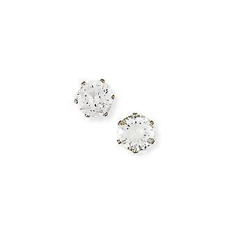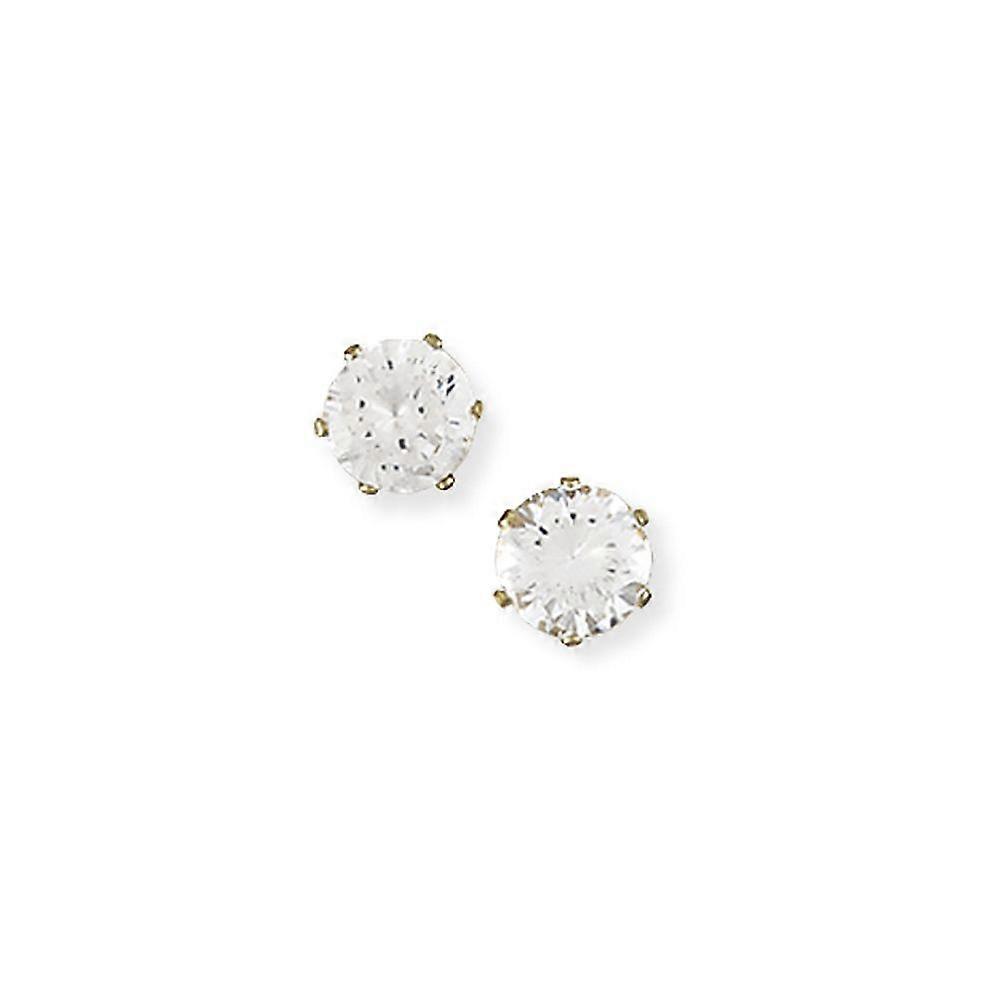 Jewelco London Ladies 9ct Yellow Gold Cubic Zirconia 6 Claw Stud Earrings - 8mm